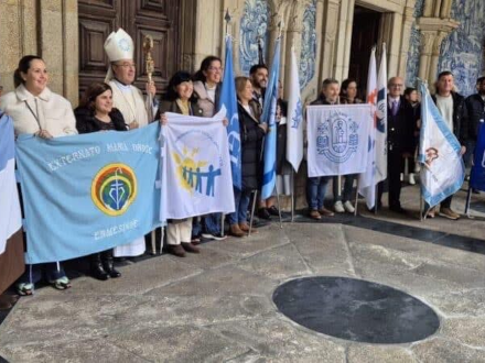 Encontro diocesano de educadores católicos na Sé do Porto para celebrar o ano do Jubileu. Orgulhosa por sermos a única escola pública presente com o seu estandarte e a ser referida na homilia. Somos todos peregrinos da esperança. Sempre convosco. Todos somos caminhantes à procura da paz e do amor .