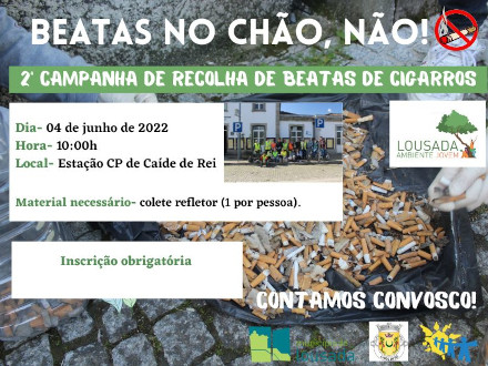 BEATAS NO CHÃO É POLUIÇÃO! No dia 4 de junho, sábado, pelas 10 horas, realiza-se a 2ª ação de limpeza na Estação de Caíde de Rei. A sua participação é importante! Juntos podemos fazer parte da mudança por um ambiente melhor! Faça a sua inscrição até dia 2 de junho através do link: https://forms.gle/2PBEARGeQCB8anpS6 ou […]