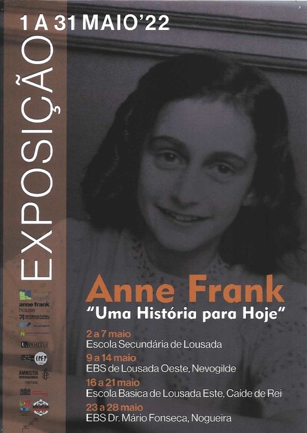 Com o apoio do Município de Lousada, a partir do dia 17 até à manhã do dia 23 de maio, estará patente na biblioteca da escola sede do Agrupamento, a exposição “Anne Frank: Uma História para Hoje”.