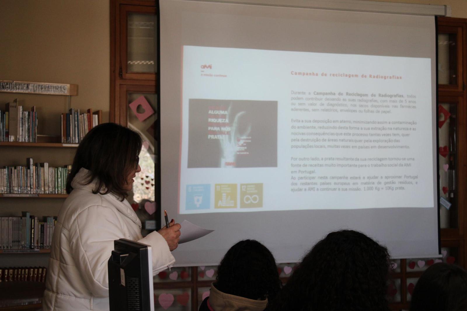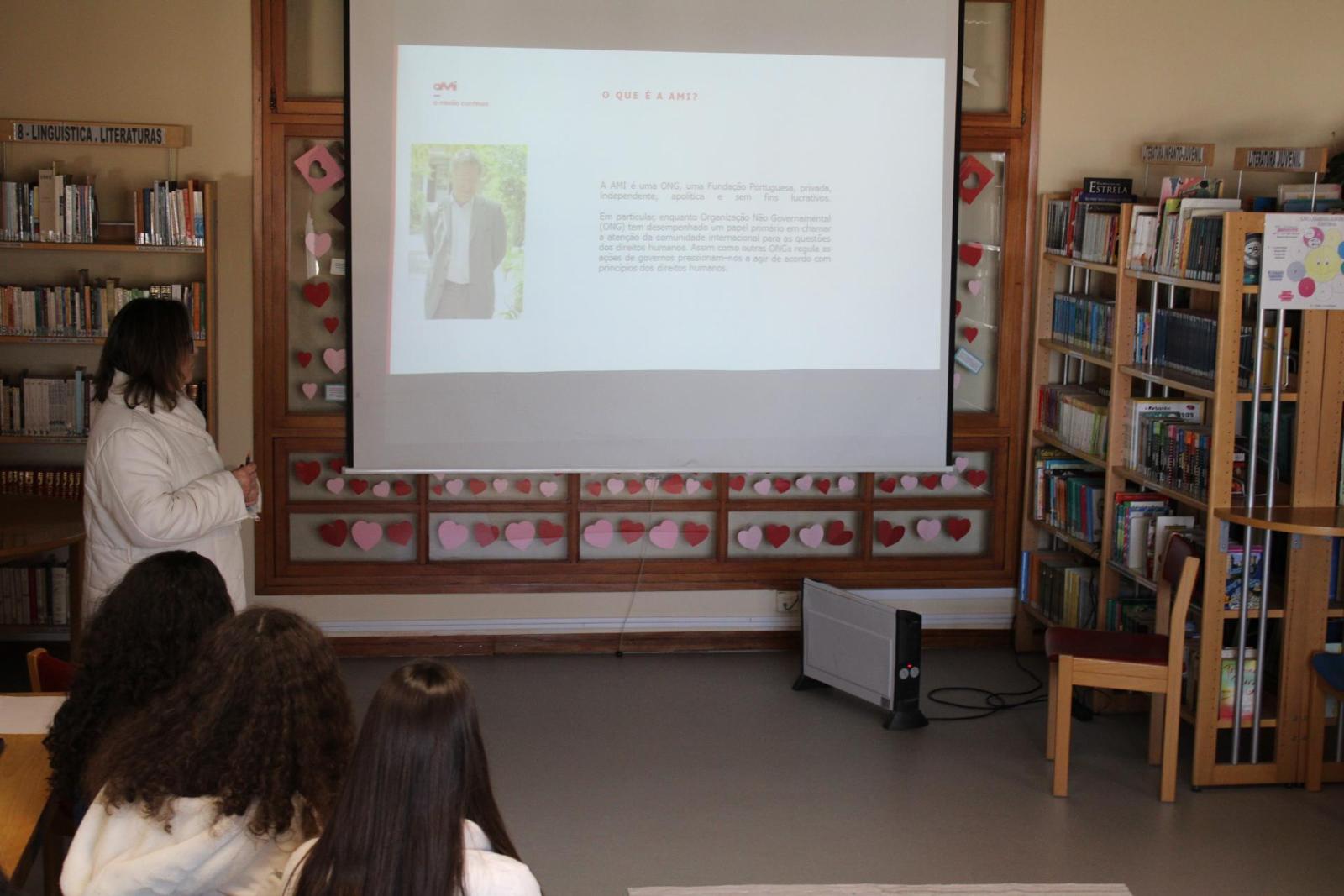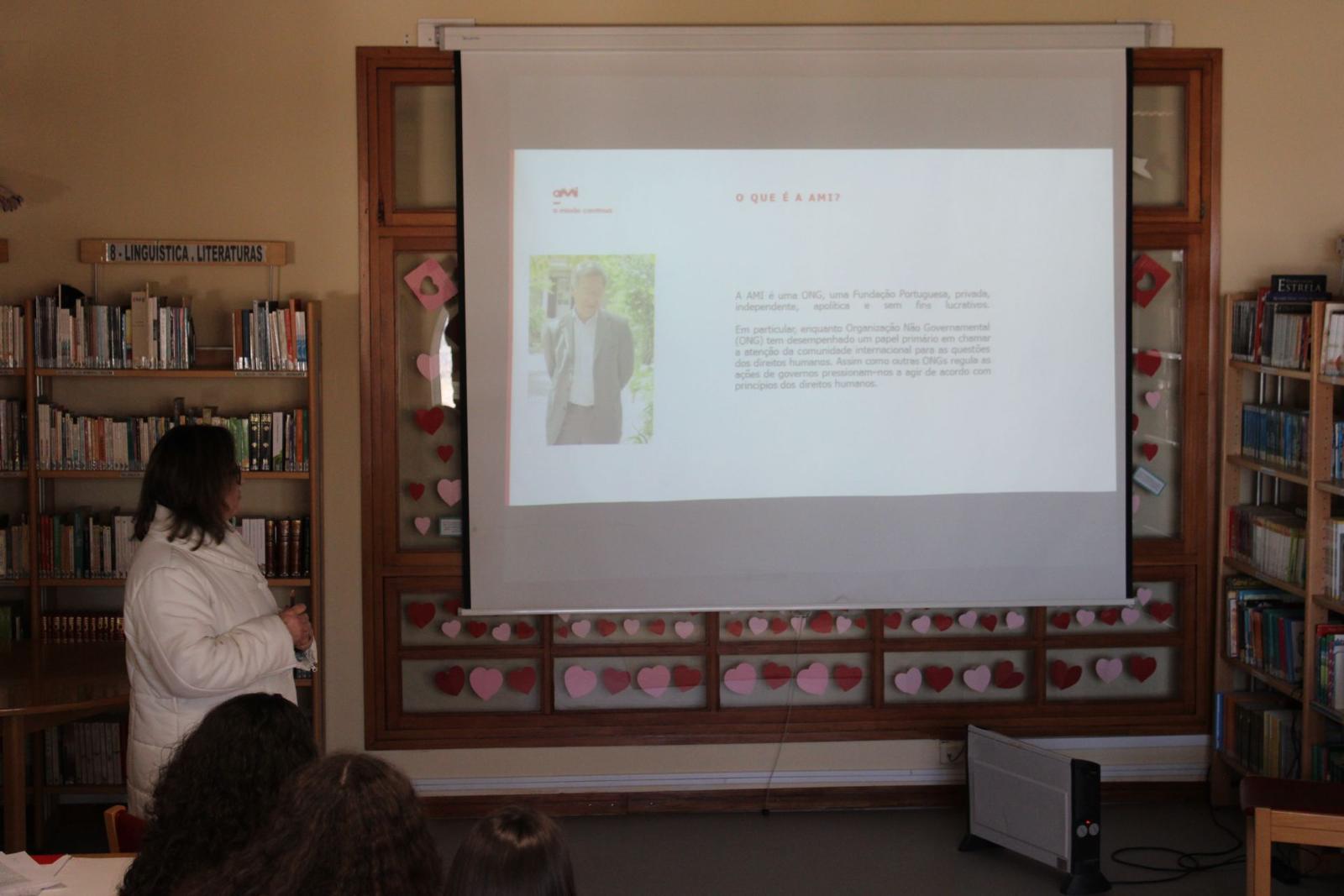 No dia 24 de fevereiro teve lugar na biblioteca escolar, uma sessão de sensibilização que contou com a participação da ONGD AMI (Age. Muda. Integra), dinamizada pelo orador Paulo Pinto, da Delegação do Porto. Esta sessão realizou-se no âmbito da disciplina de Geografia, relacionada com o tema da ajuda ao desenvolvimento. Esta sessão foi destinada aos alunos de 9º ano, que ficaram muito agradados com a experiência, principalmente porque lhes permitiu contactar de perto com uma organização que está no terreno e que presta assistência aos mais frágeis.