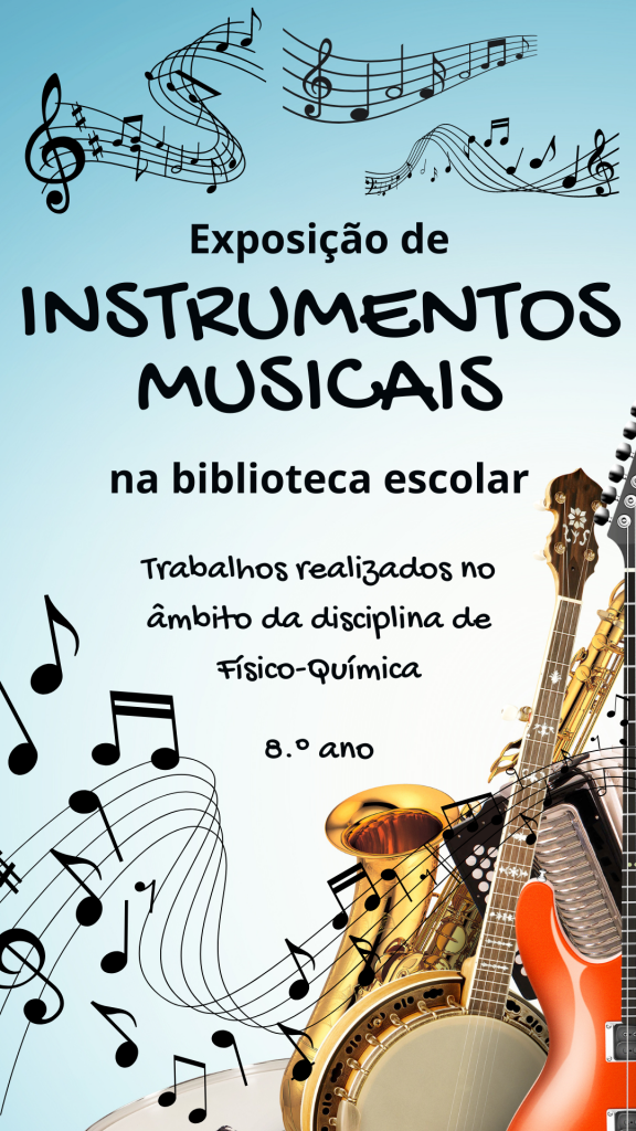Está a decorrer até dia 31 de março a exposição de Instrumentos Musicais na biblioteca escolar. Estes instrumentos foram concebidos por alunos do 8º ano, no âmbito da disciplina de Físico-Química.