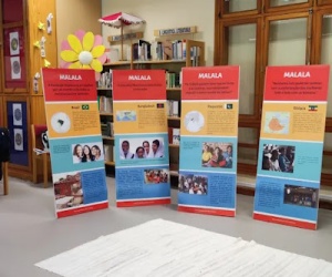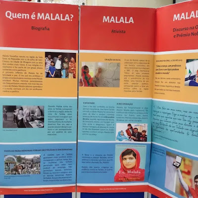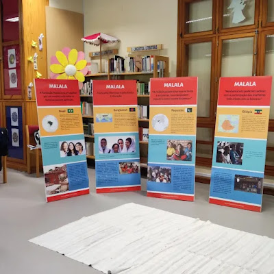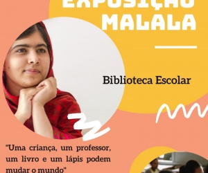 A equipa da BE organizou esta exposição sobre a vida da jovem ativista e premiada com o Nobel da Paz, Malala Yousafzai, destacada no edifício da nossa escola através de um mural da autoria de Frederico Draw.