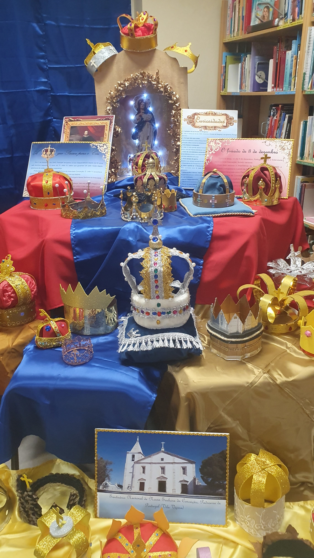 Os alunos do 6.º ano, no âmbito da disciplina de História e Geografia de Portugal, realizaram a exposição “A coroa que passou para o céu”, uma iniciativa desenvolvida para assinalar o feriado de 8 de dezembro, ligado à Imaculada Conceição e à figura de D. João IV.