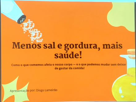 No âmbito da celebração do “Dia Mundial da Alimentação”, os professores do 3.º ciclo de Ciências Naturais organizaram no dia 16 de outubro uma palestra, para os alunos do 9.º ano de escolaridade, sobre a temática “Menos sal e gordura, mais saúde!”. O palestrante foi o nutricionista Dr. Diogo Lameirão da ULS Tâmega e Sousa.